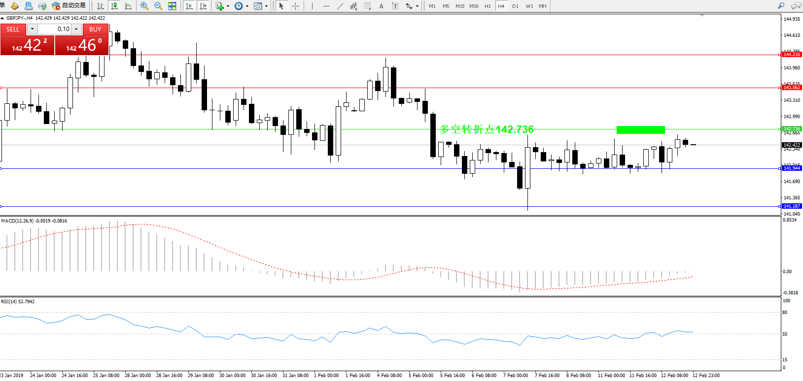 交易策略:142.736下方看跌,目标141.944141.187