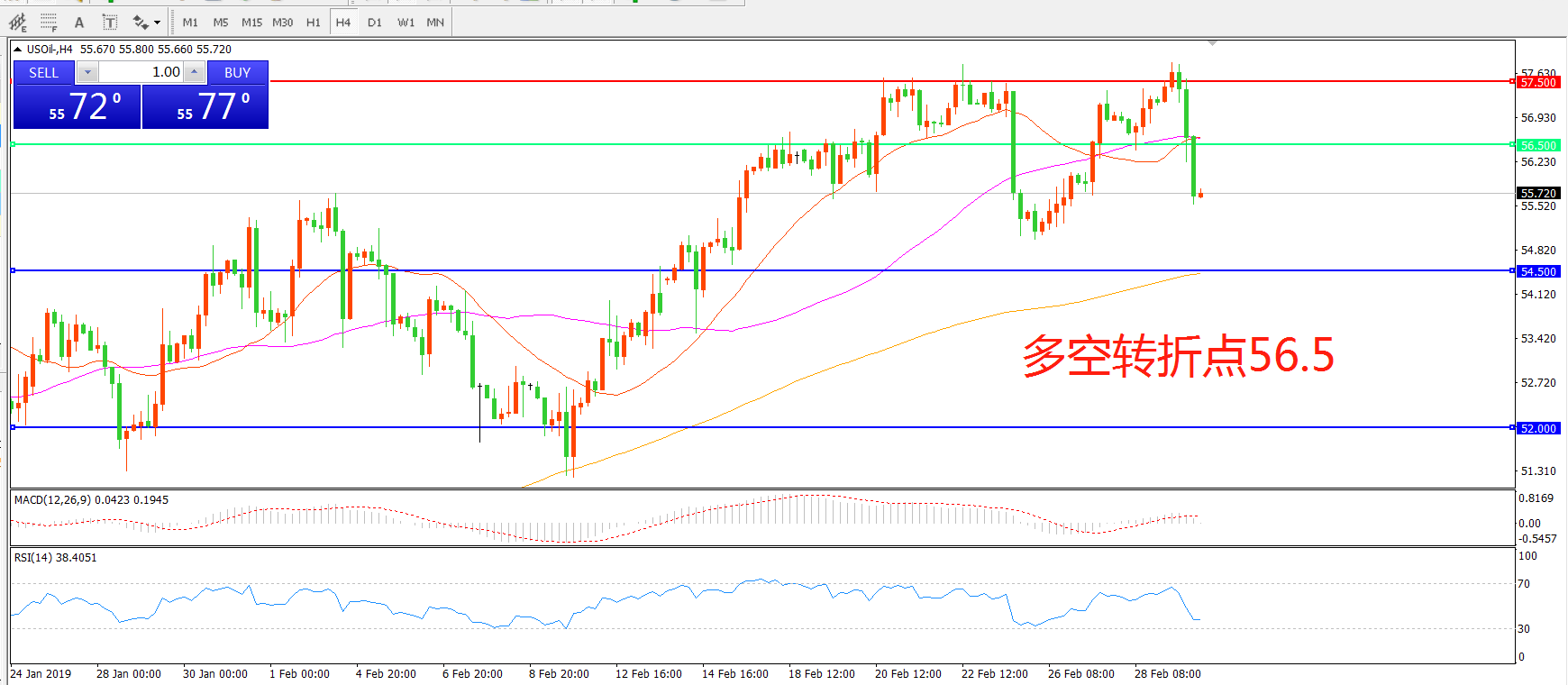 交易策略:在56.50之下看跌,目标54.00    52.00