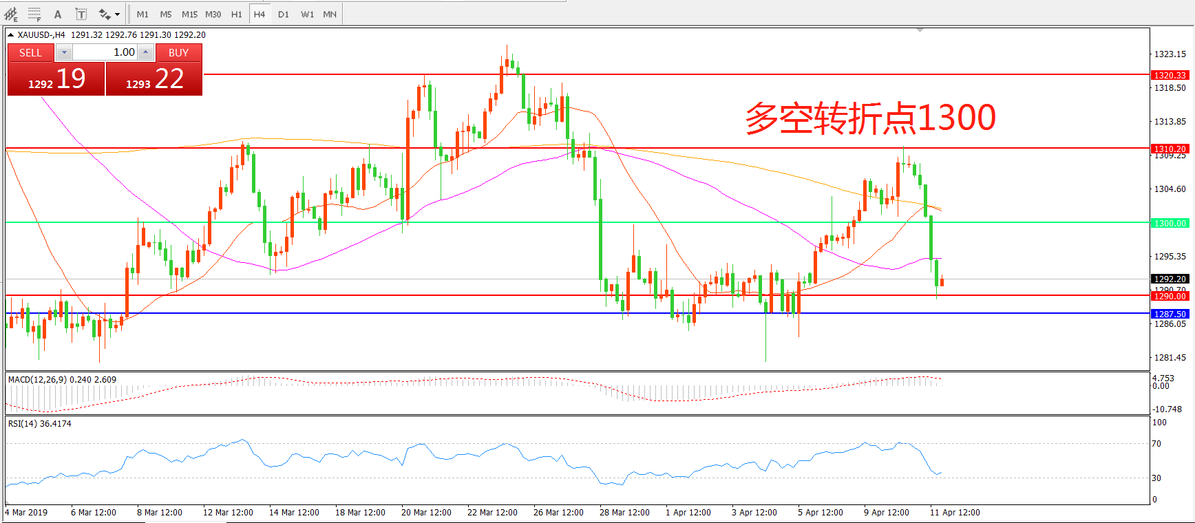 多空转折点:1300.00