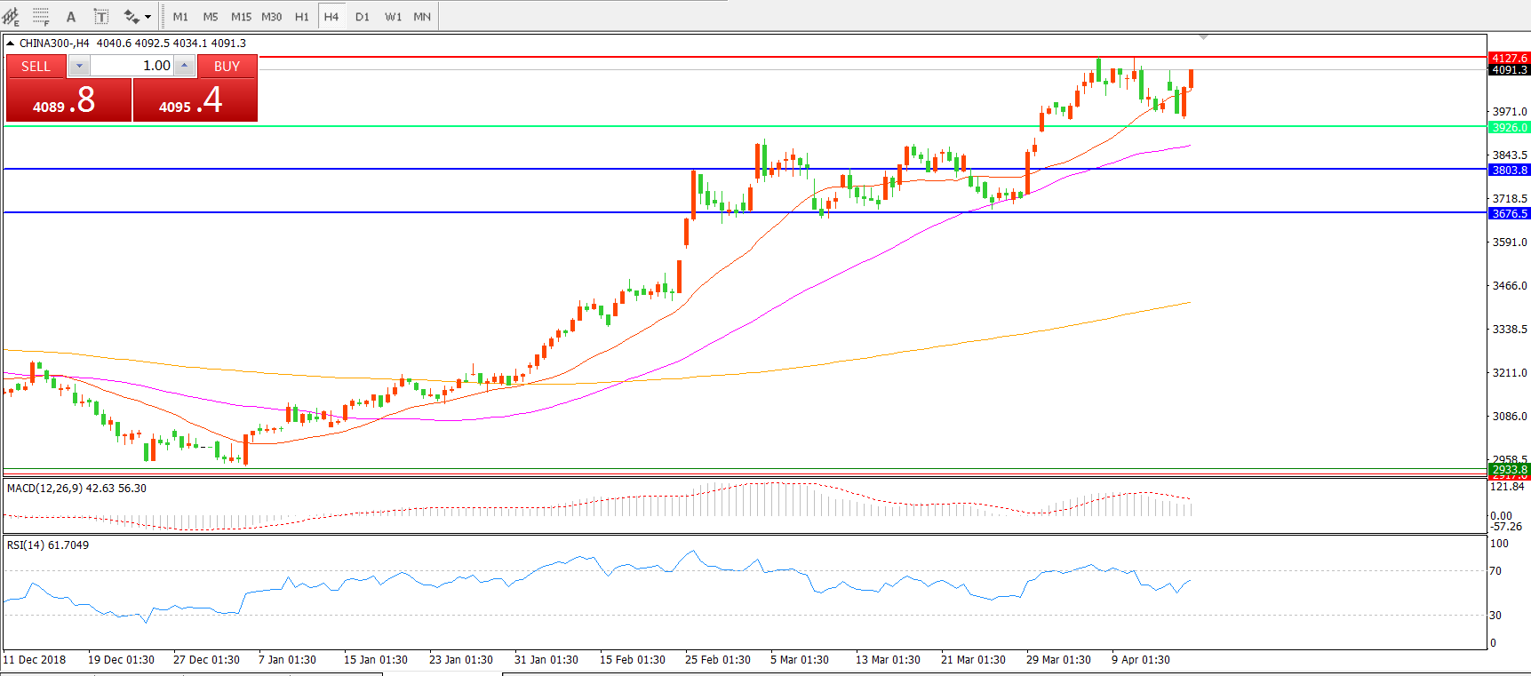 中华指数CHINA300    4小时图