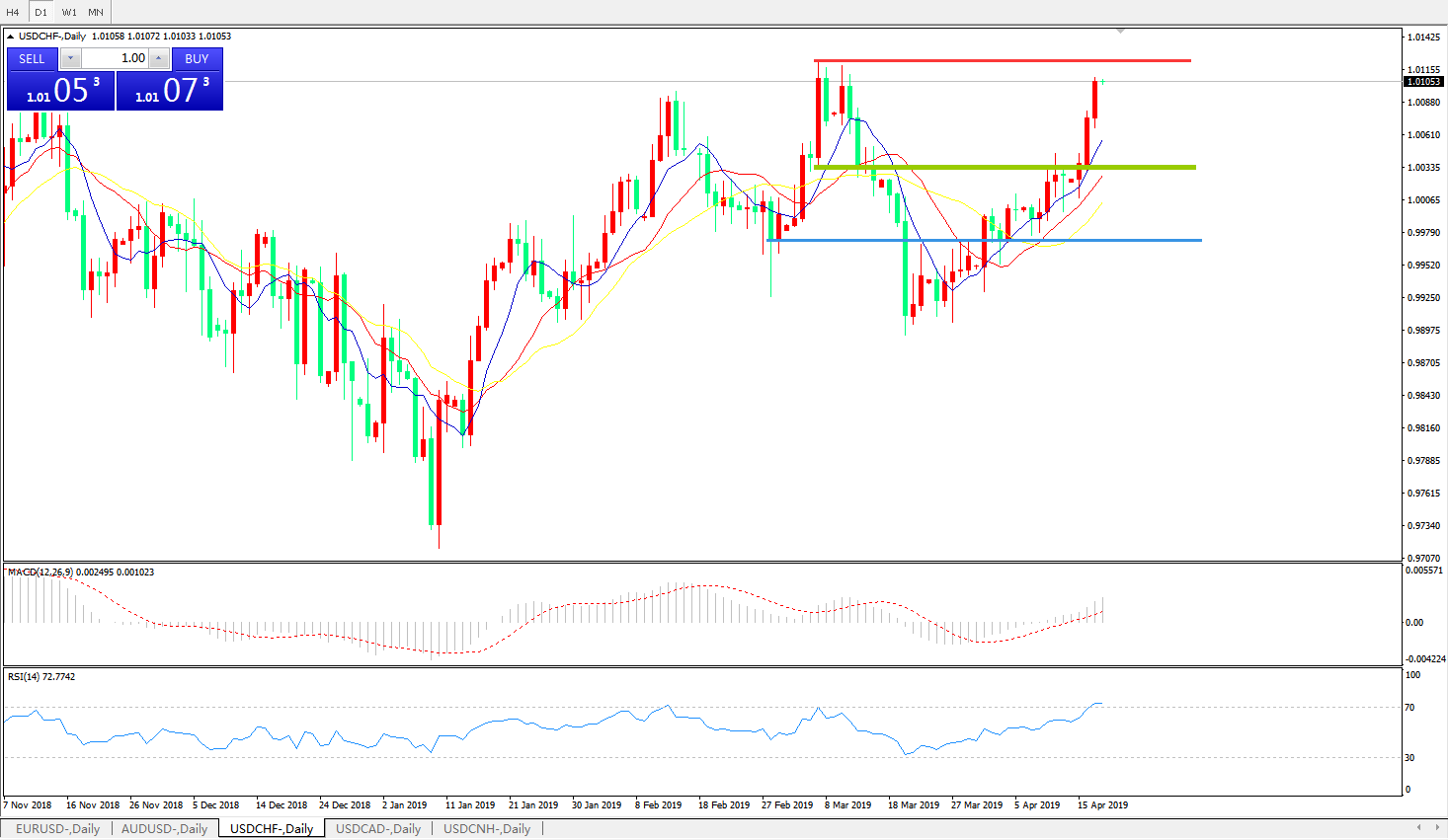 美元瑞郎USDCHF   日线图: