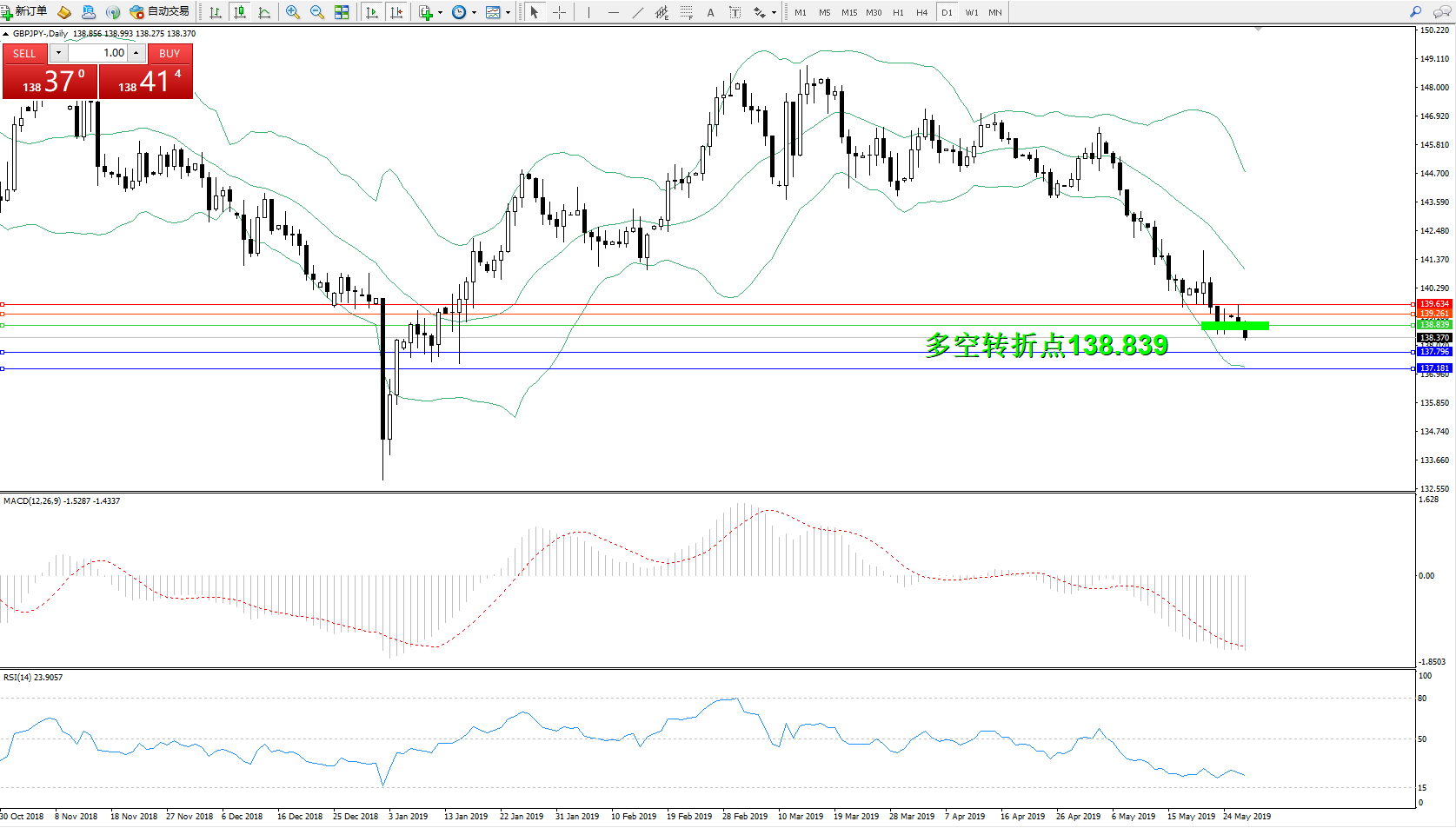 交易策略:138.839下方看跌,目标137.796137.181