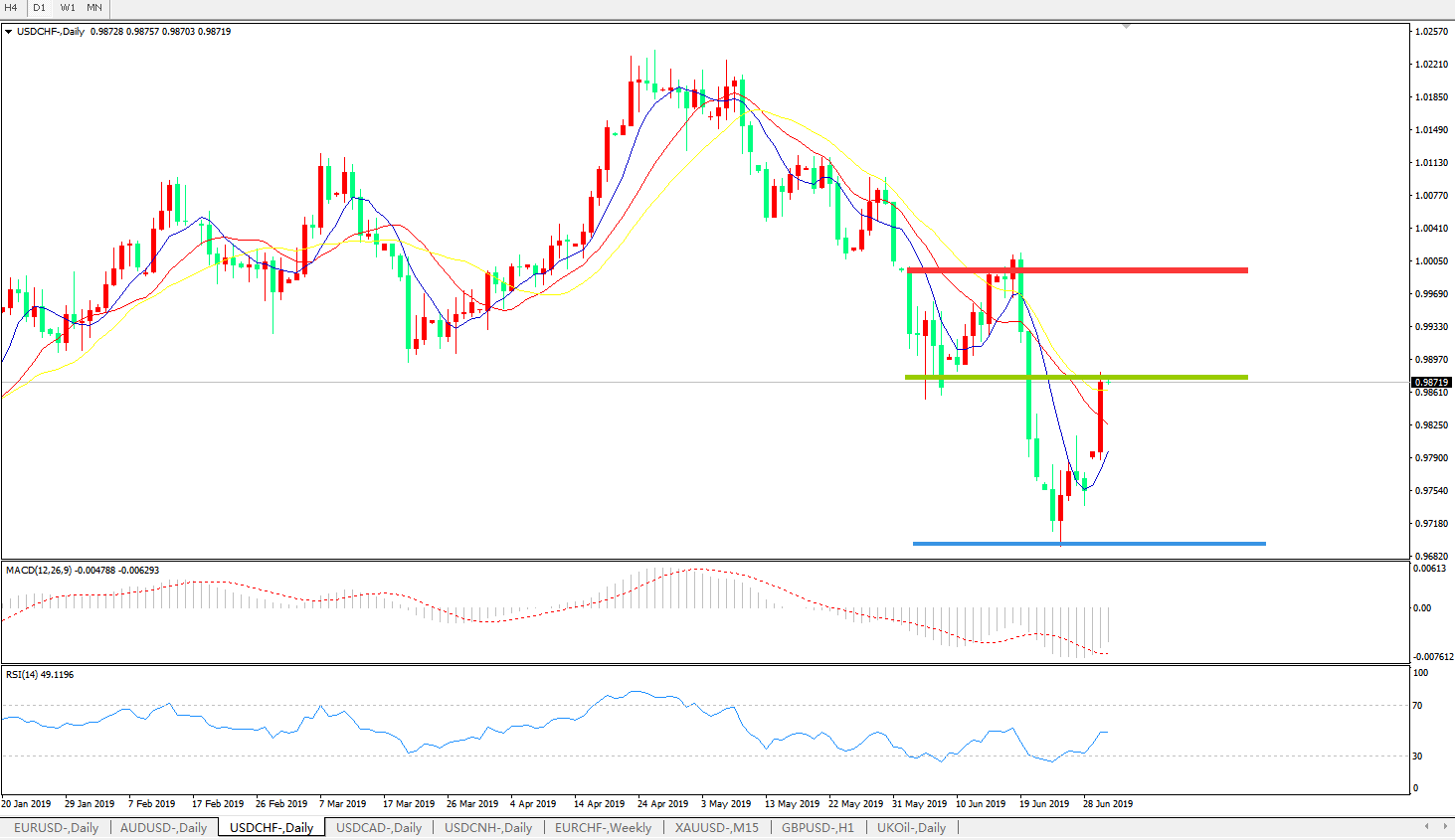 美元兑瑞郎USDCHF   日线图: