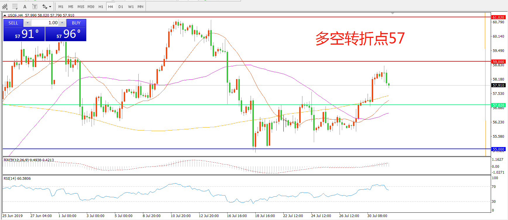 多空转折点:57.00