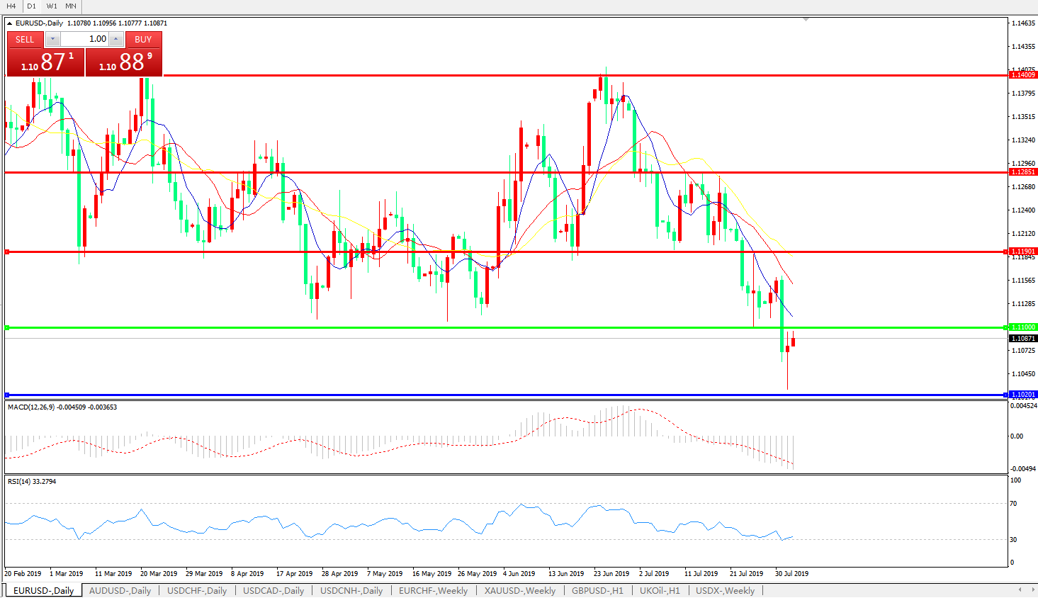 支撑位:1.1020、1.0000