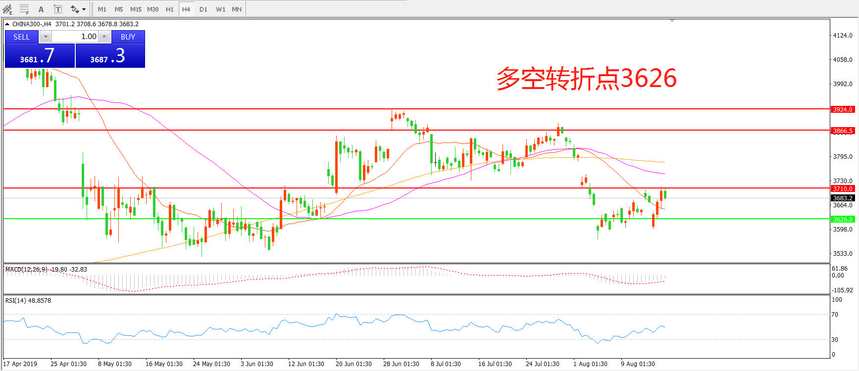 沪深300指数CHINA300 4小时图