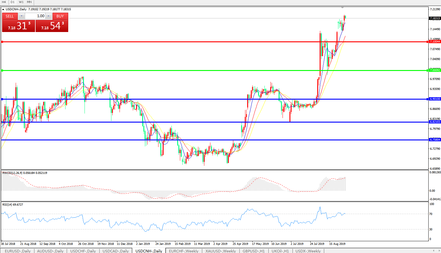 交易策略: 在7.0000之上,看涨,目标价位为7.1000,然后为7.2000。
