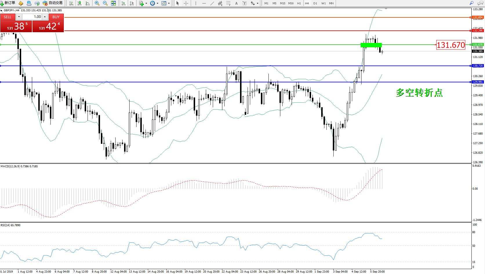 多空转折点:131.670
