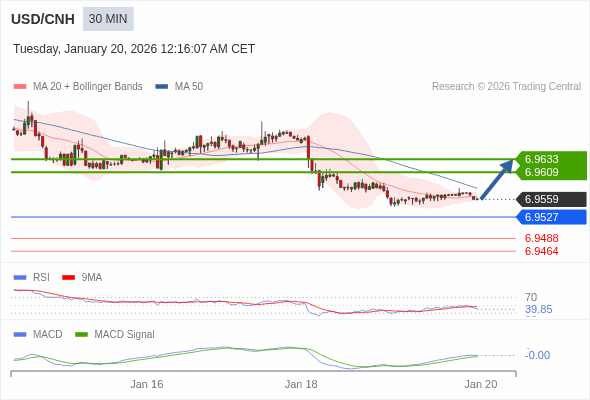替代方案: 在6.9527以下,期待6.9488和6.9464。