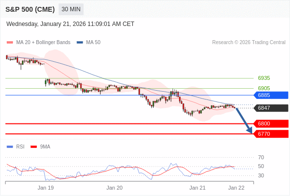 交易策略: 在 6885 之下,看跌,目标价位为 6800 ,然后为 6770 。