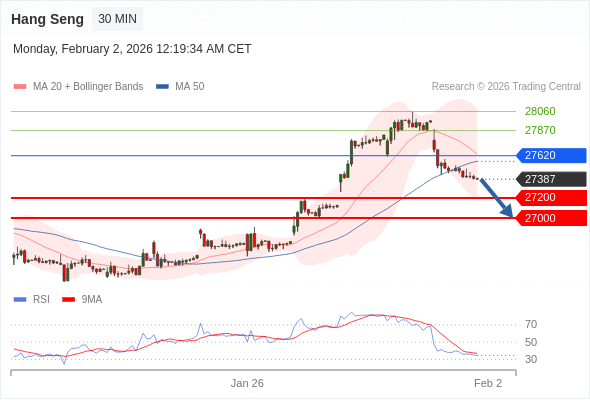 在 27620 之下,看跌,目标价位为 27200 ,然后为 27000 。
