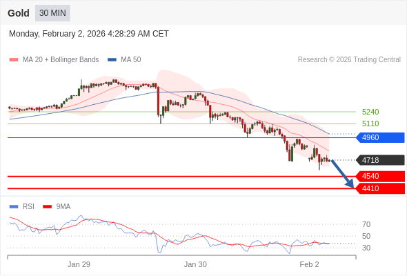 在 4960 之下,看跌,目标价位为 4540 ,然后为 4410 。