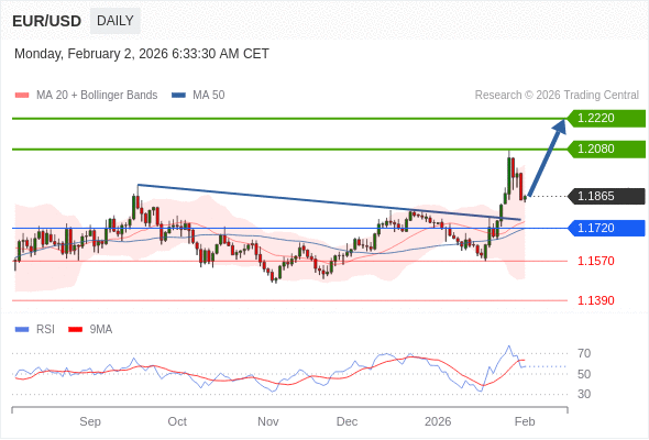 在 1.1720 之上,看涨,目标价位为 1.2080 ,然后为 1.2220 。