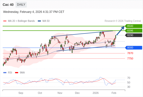在 8000 之上,看涨,目标价位为 8396 ,然后为 8500 。
