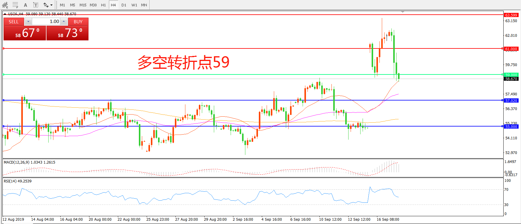 多空转折点:59.00