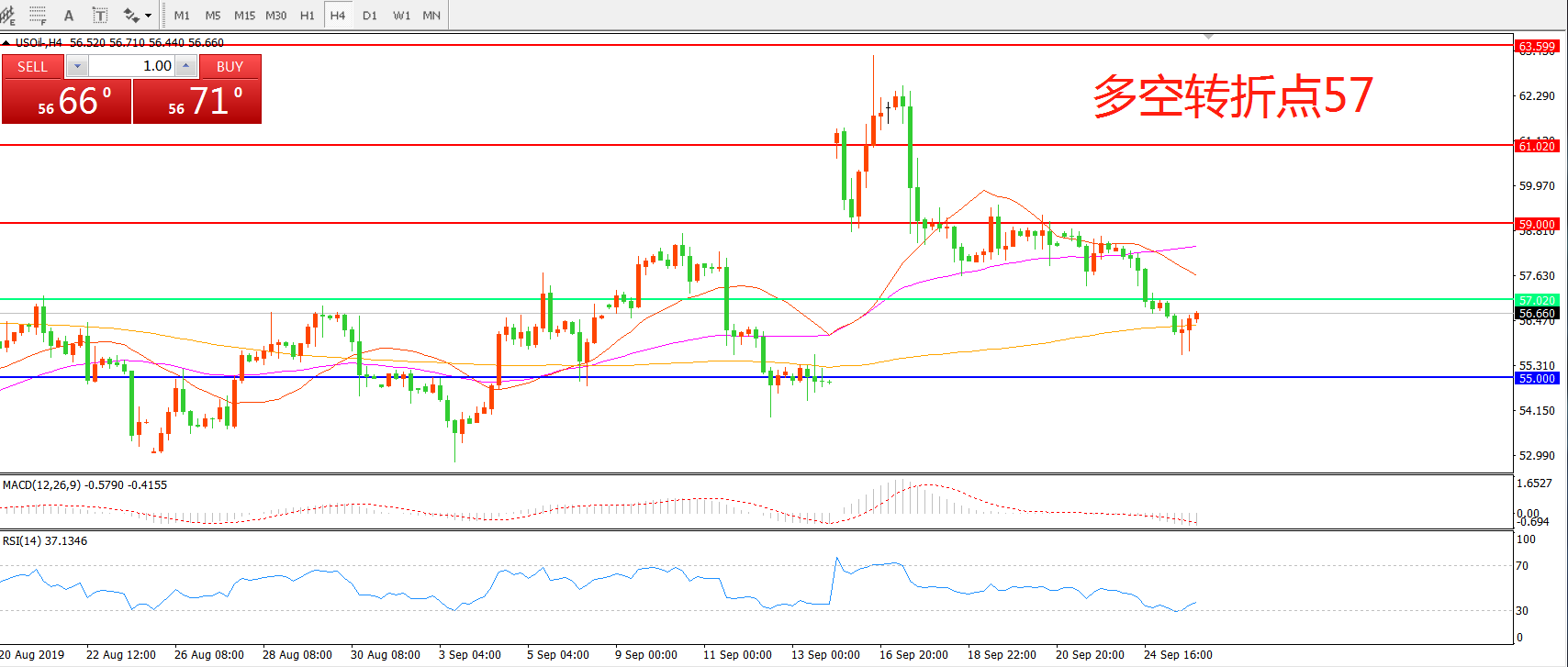 多空转折点:57.00