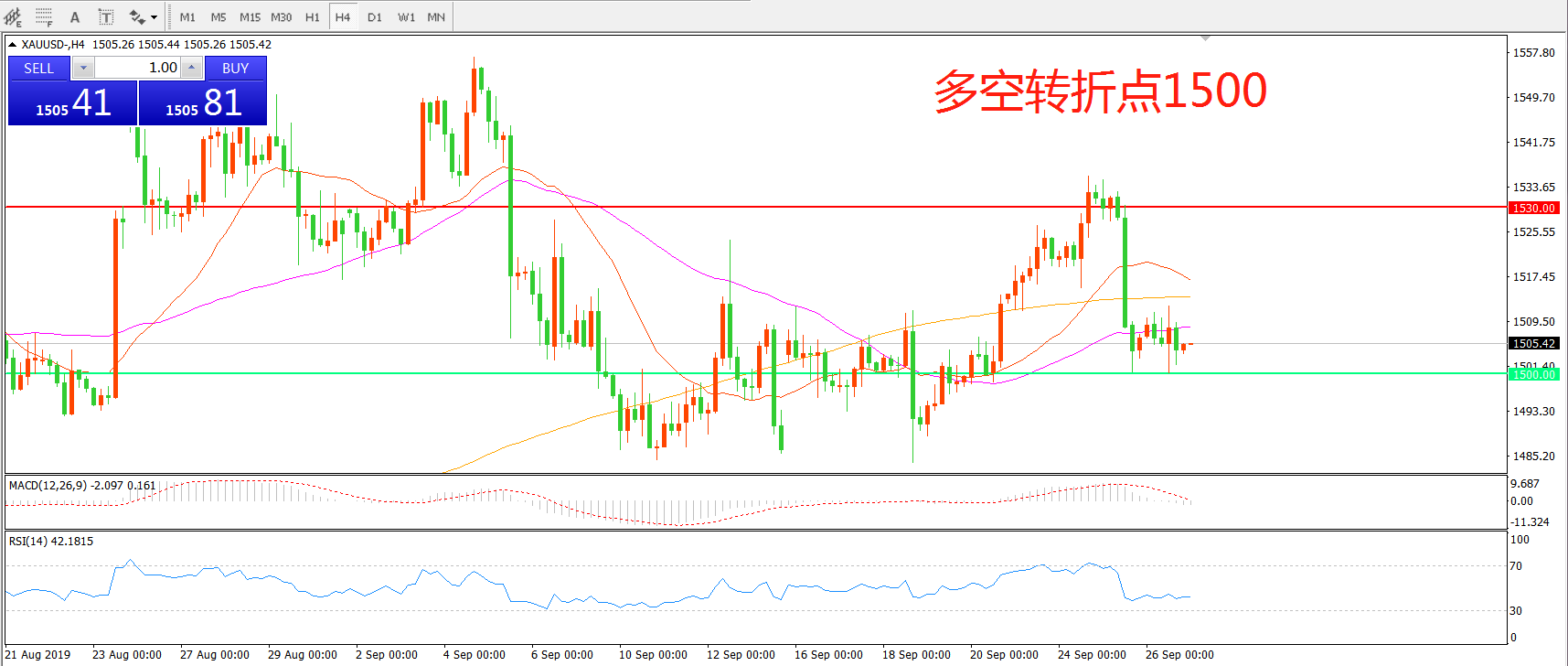 多空转折点:1500.00