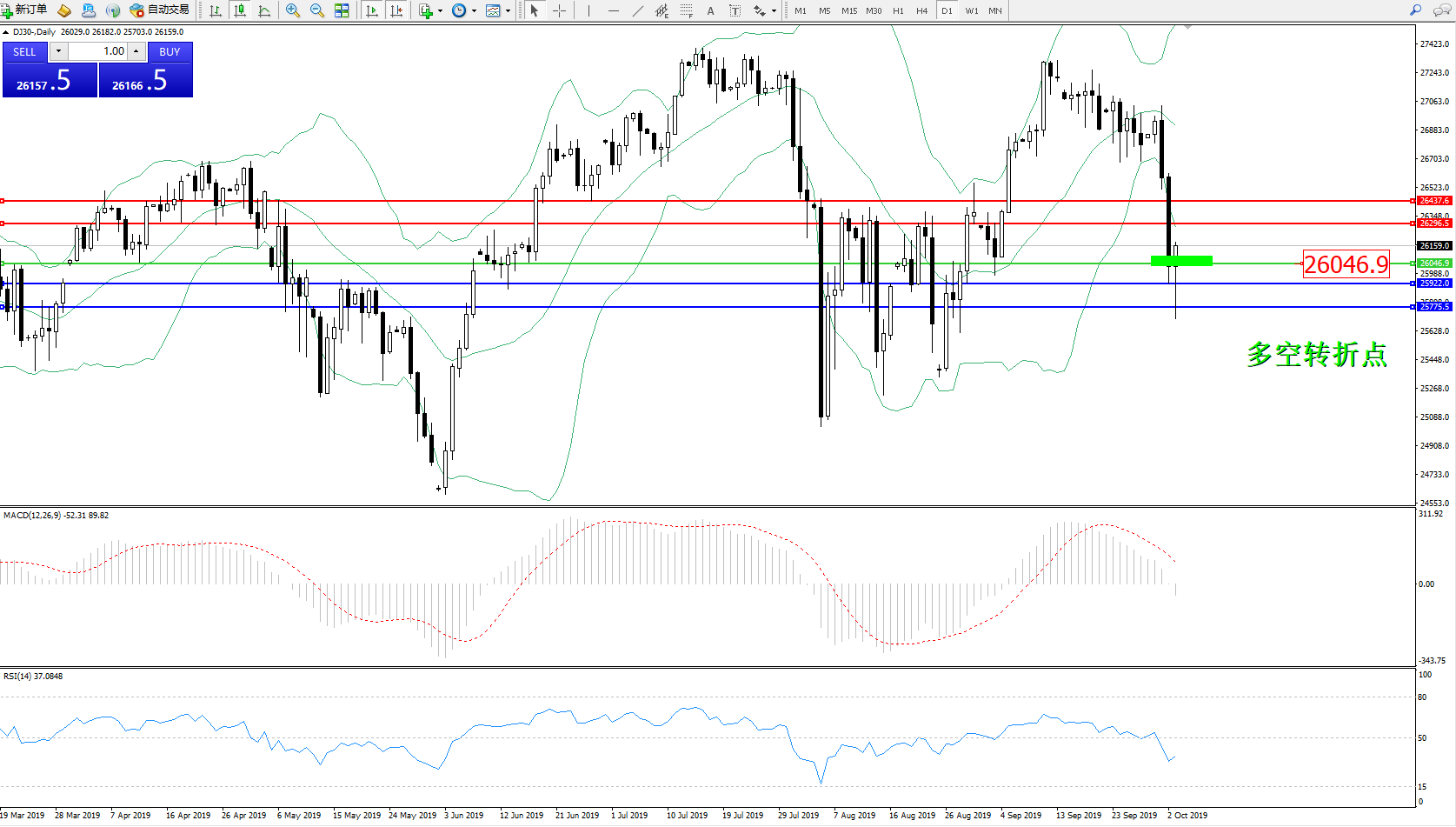 道琼斯指数103日(周四)收盘上涨122.80点,涨幅0.47%,报26201.38点。美国股市周四收高,此前有数据显示美国服务业活动降至三年来最低水平,这引发了市场对美联储将降息以遏制经济进一步下滑的预期。疲弱的美国服务业数据加剧了人们对经济增长的担忧,并提振了对美联储进一步降息的押注。全球增长正在放缓,美国增长也在减速,因为贸易争端,以及贸易政策带来的不确定性,但市场喜欢低成本资金,只要嗅到一点降息的气息,就会上涨。
