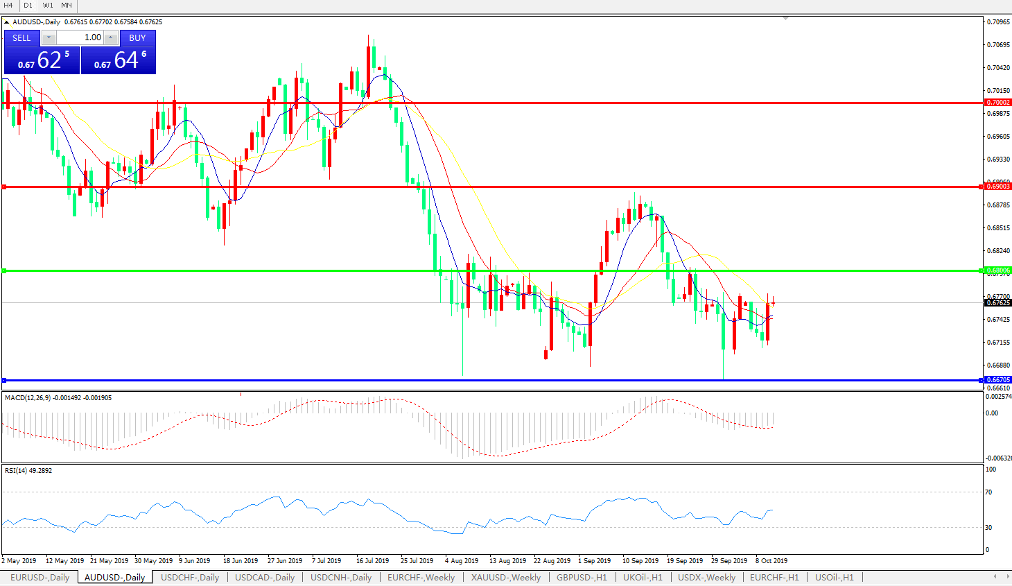 备选策略:0.6800上方看涨,目标0.6900、0.7000