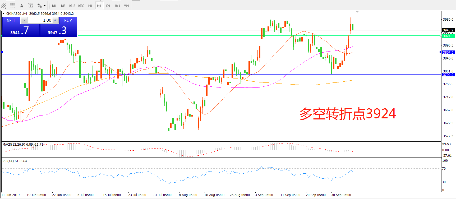 多空转折点:3924.00
