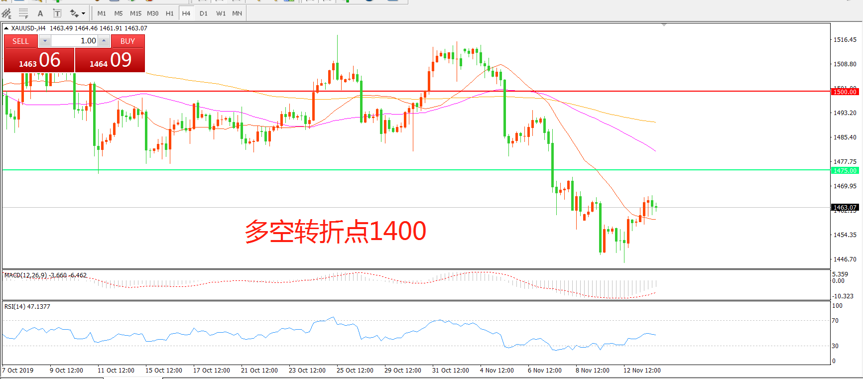 多空转折点:1475.00