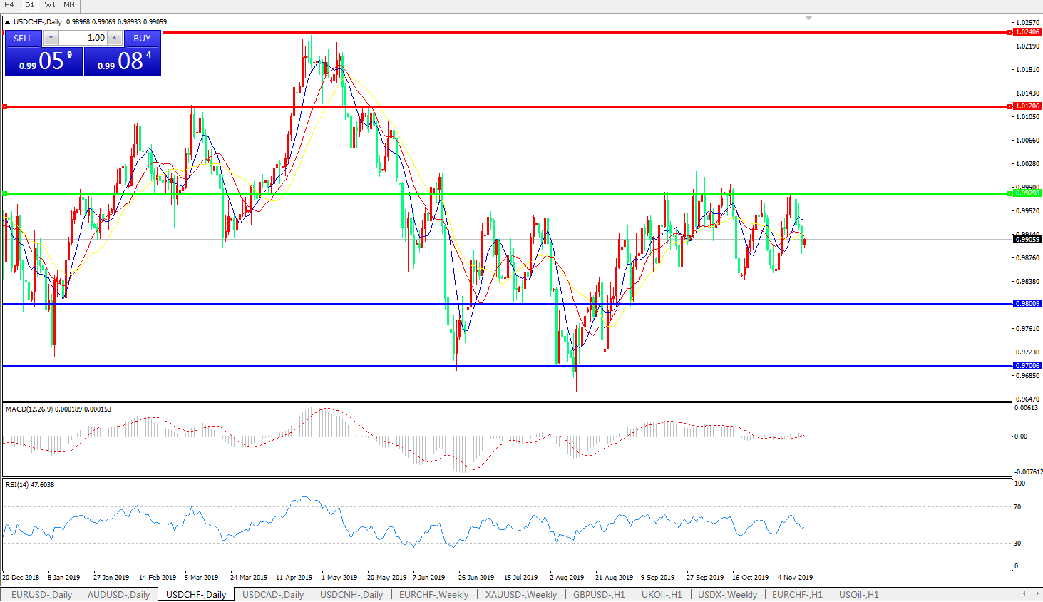 交易策略:0.9980下方看跌,目标0.9800、0.9700