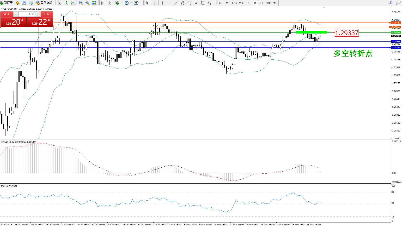 交易策略:1.29337下方看跌,目标1.28969、1.28722