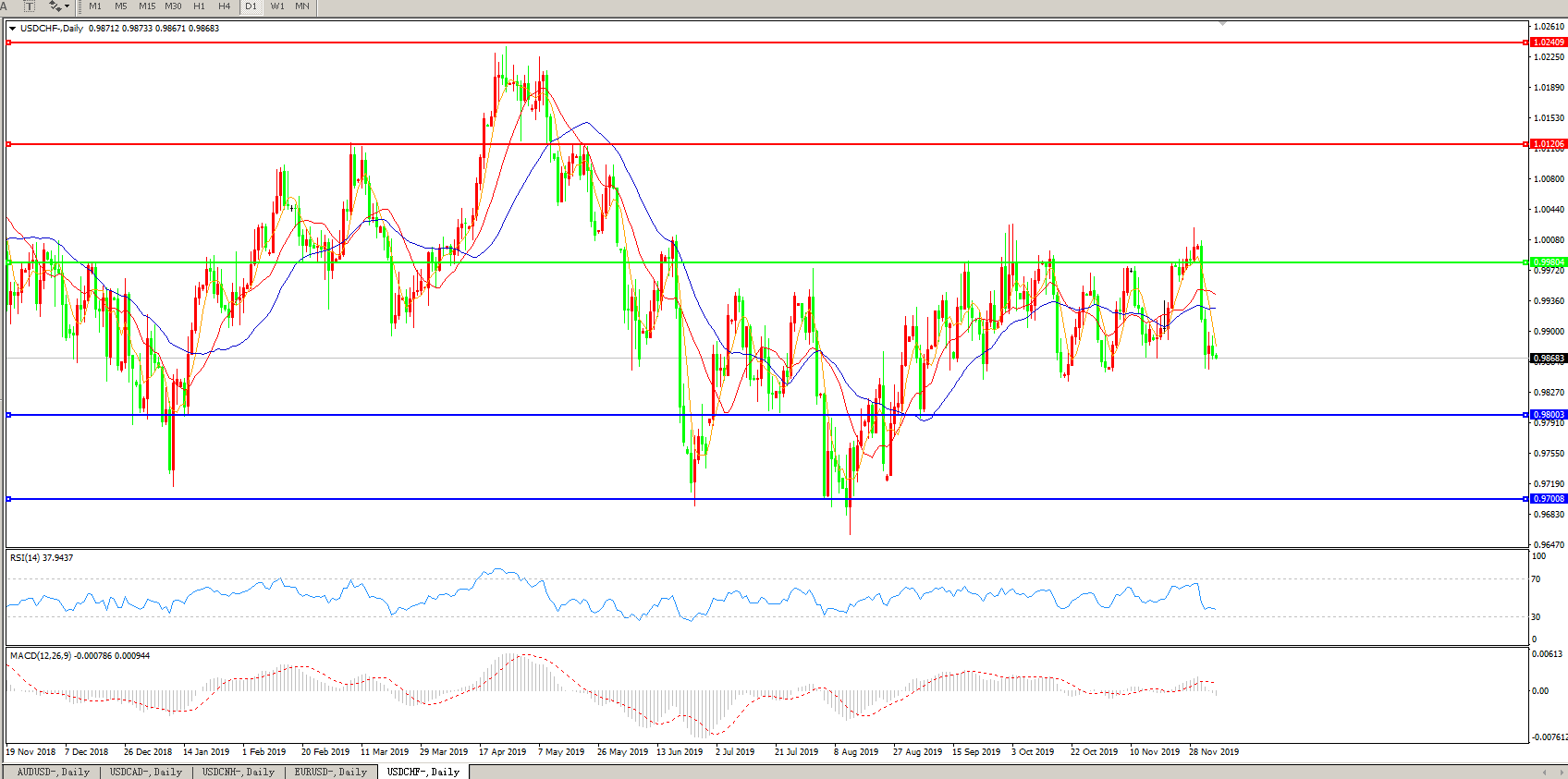 美元兑瑞郎USDCHF    日线图: