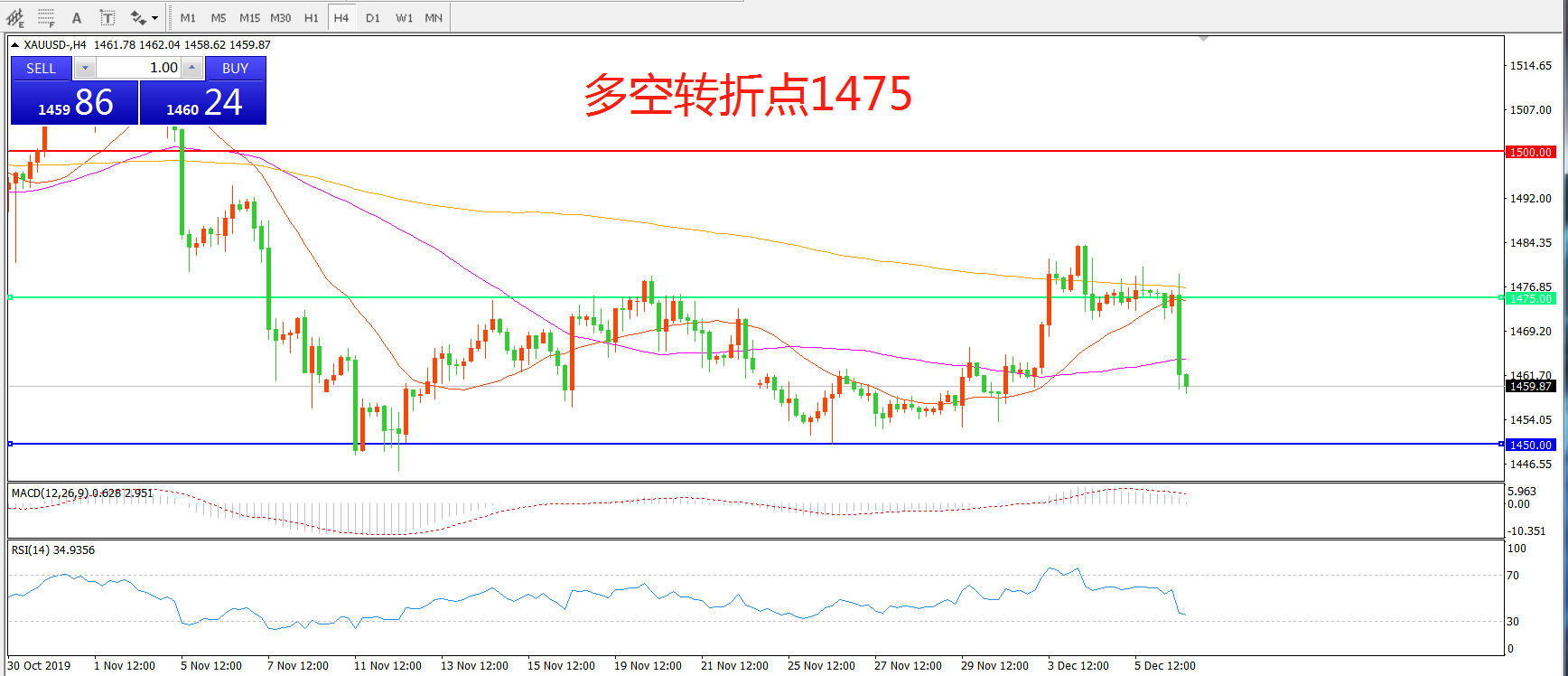 交易策略:在1475.00之下看跌,目标1450.00   1420.00