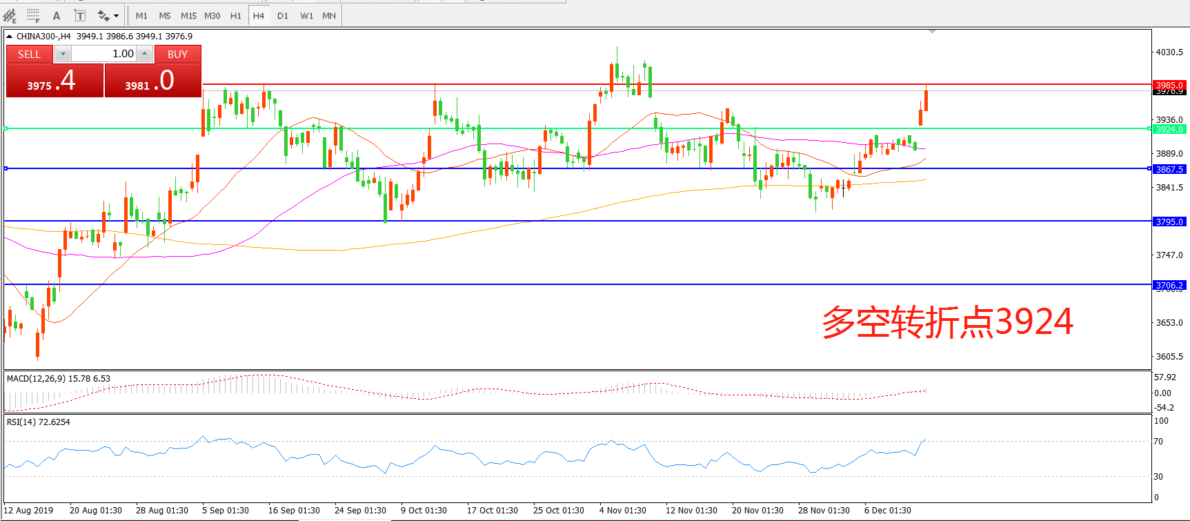 多空转折点:3924.00