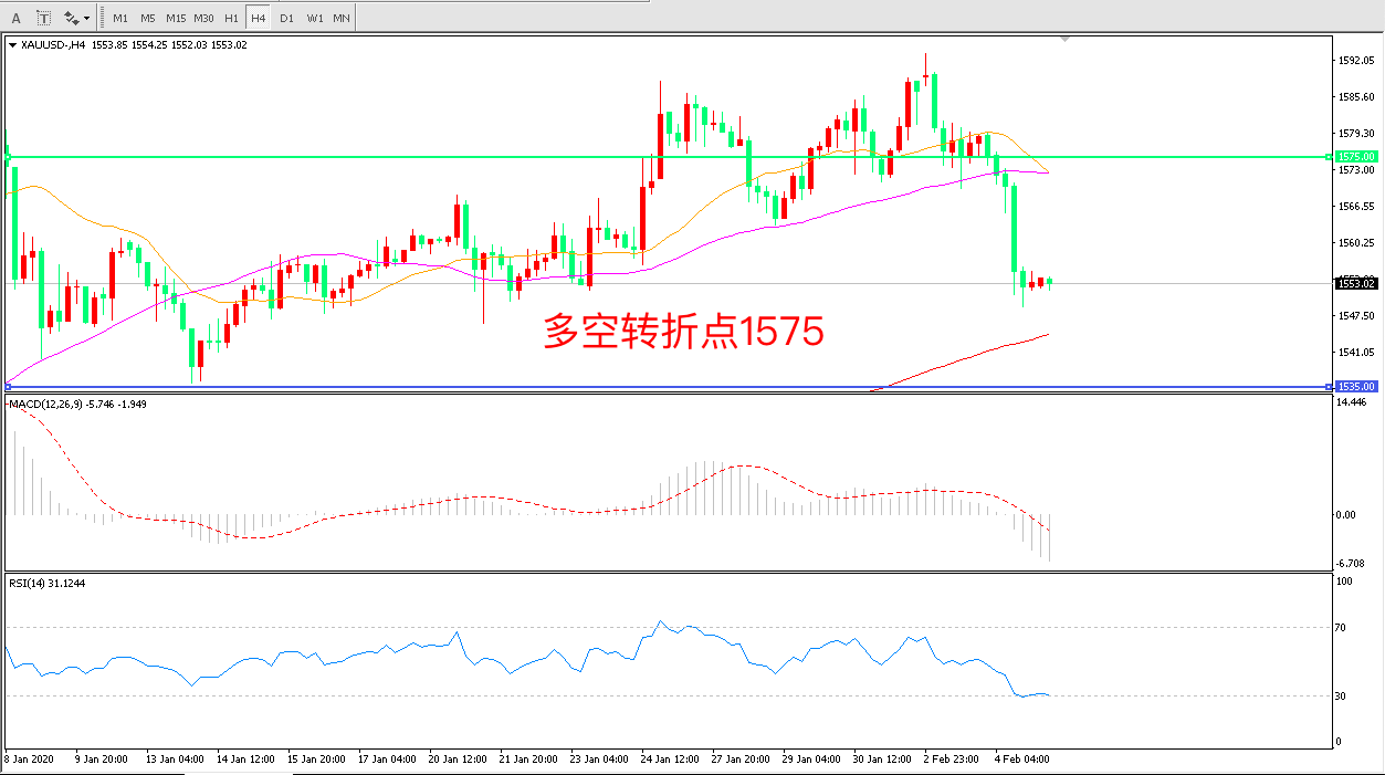 交易策略:在1575.00之下看跌,目标1535.00 1500.00