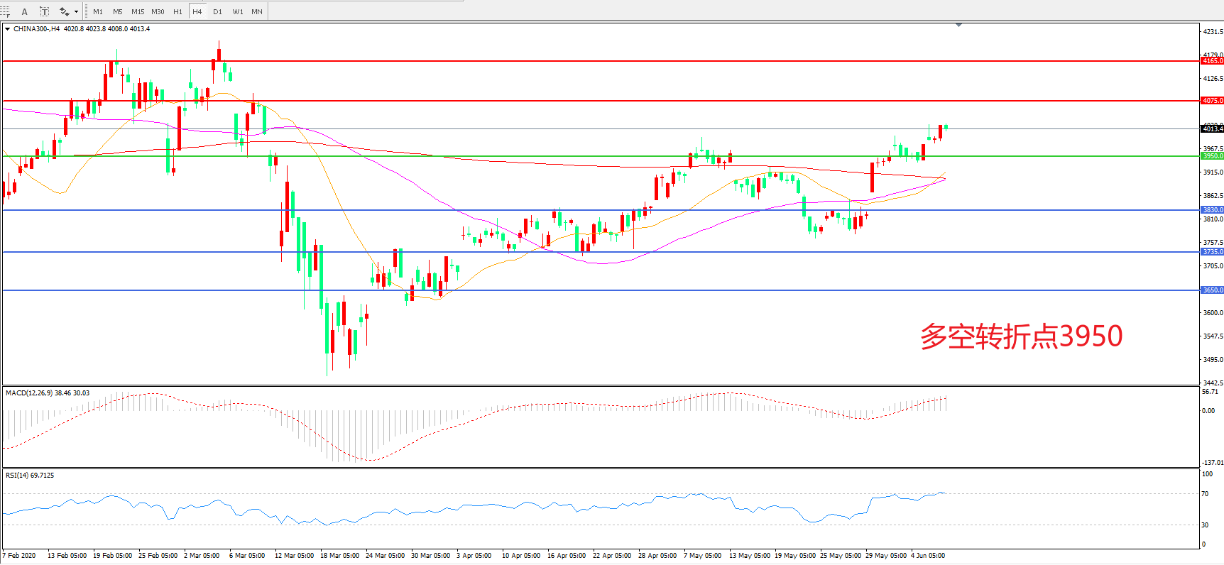 交易策略:在3950之上看涨,目标4075.00       4165.00