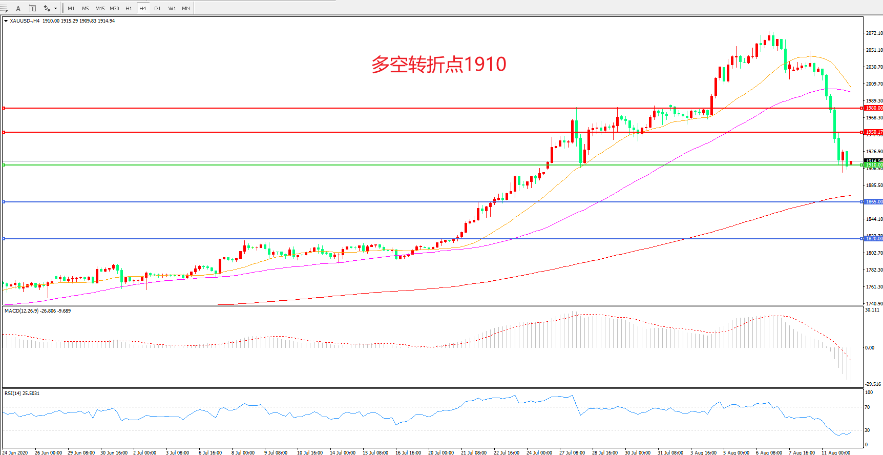 备选策略: 在1910.00之上看涨,目标1950.00 1980.00