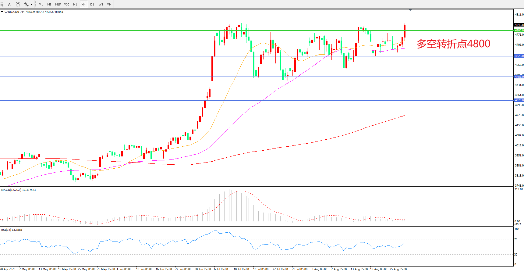多空转折点:4800.00