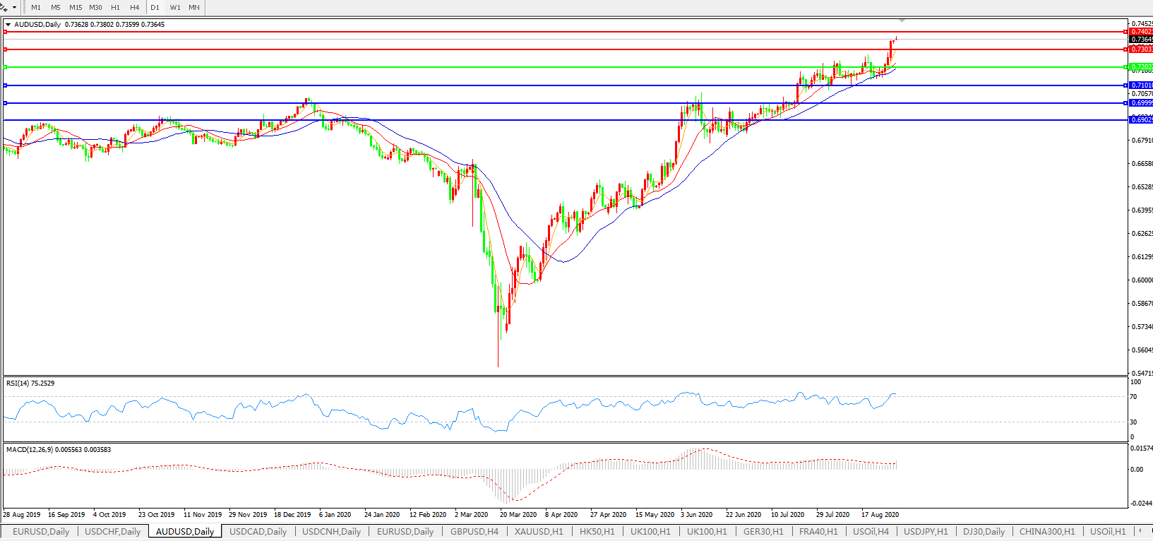 澳元兑美元AUDUSD 日线图: