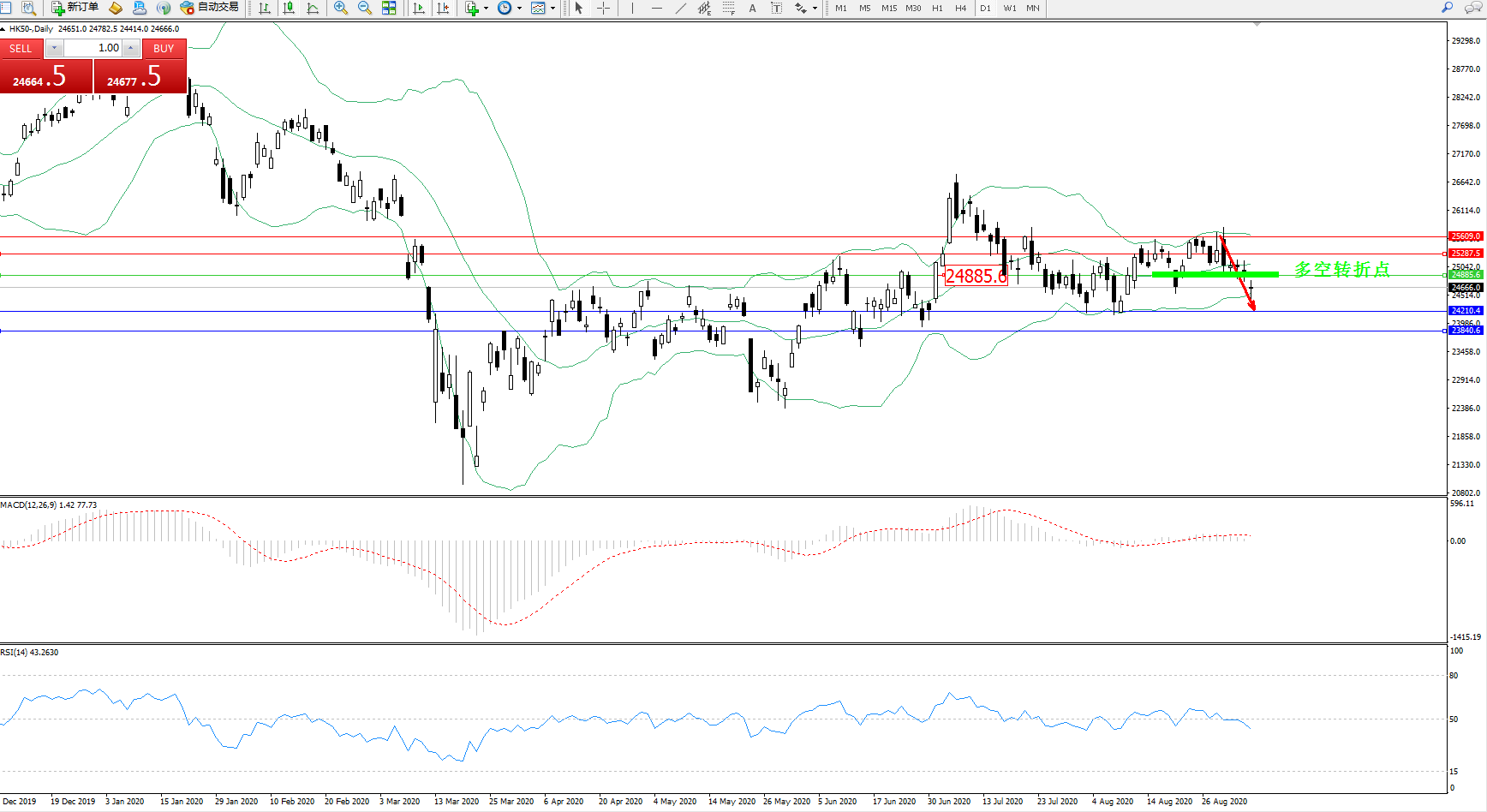 香港恒生指数9月4日(周五)收盘下跌312.15点,跌幅1.25%,报24695.45点;港股三大指数均收跌,恒指尾盘略有回升。恒生科技指数跌幅收窄至1.53%,曾一度大跌超5%。苹果概念股逆势领涨,比亚迪电子大幅震荡超17%,收涨6%;恒生科技股普遍下跌,京东跌近5%,阿里跌3.59%,腾讯跌3%,小米由跌转涨至2.5%,早盘跌超7%。今日南下资金逆势净流入62.11亿港元,大市成交额为2131亿港元。港交所消息,因恒生综合大型股指数、中型股指数、小型股指数实施成份股定期调整,港股通股票名单将自9月7日起调整。其中,沪港通下的港股通股票名单,共有10只调入、11只调出;深港通下的港股通股票名单,共有24只调入、15只调出。九毛九、神州租车等获调入。