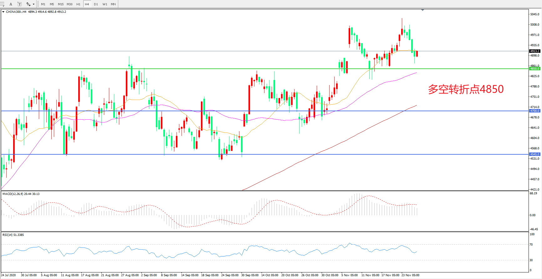 多空转折点:4850.00