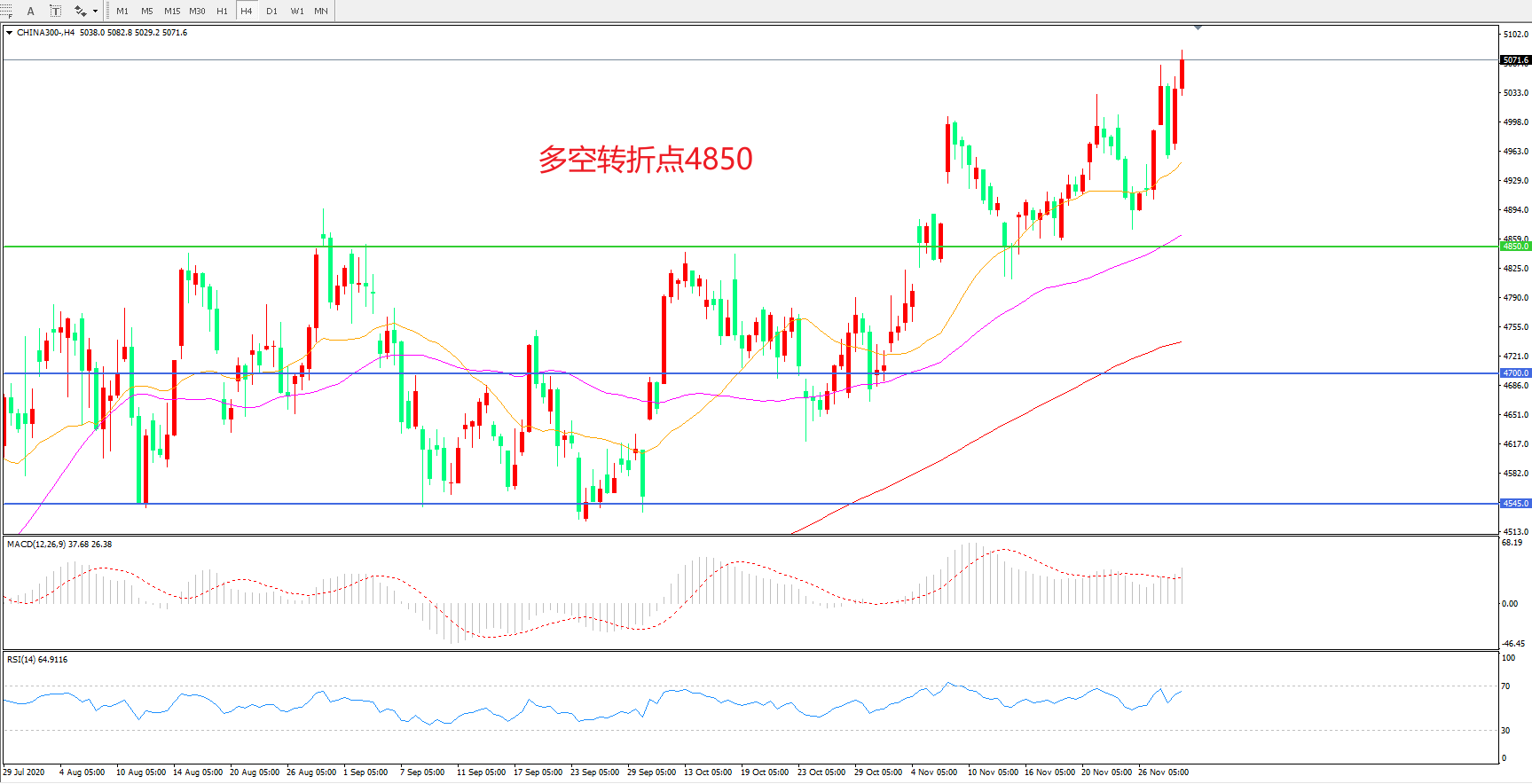 多空转折点:4850.00