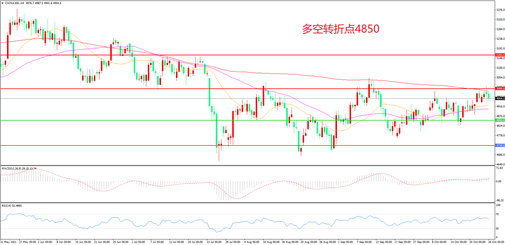多空转折点:4850.00