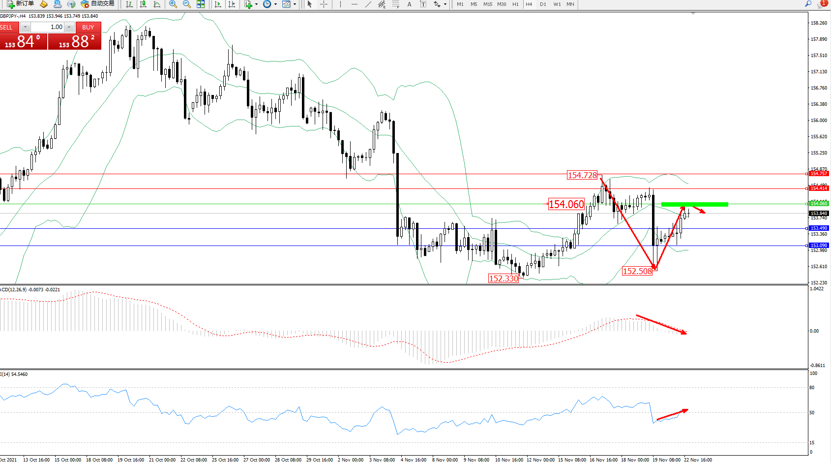 技术点评:短期维持在布林带指标通道内弱势震荡中,低位抵达152.508位置后持续震荡回升,触及布林带指标中轨附近节点后短期开始遇阻整理,布林带指标呈收口走势,空头动力有伺机入场迹象,MACD指标纠结于0轴线附近弱势徘徊中,RSI指标处于50均衡线附近弱势整理有上移迹象;