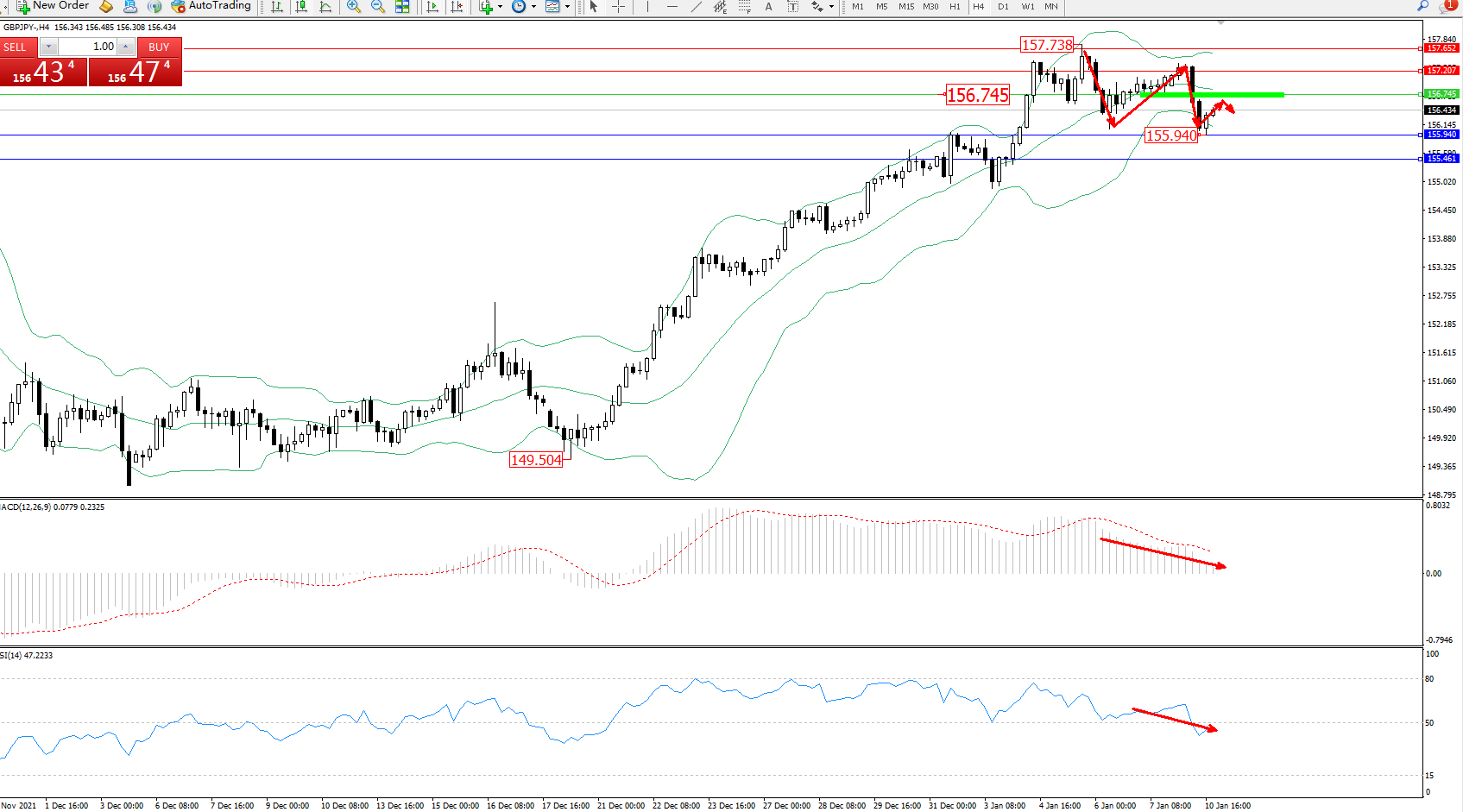 交易策略:156.745下方看跌,目标155.940、155.461