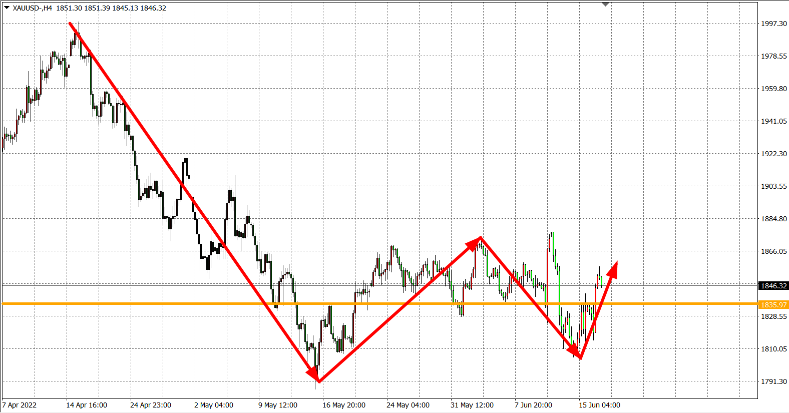 现货黄金XAUUSD    4小时图