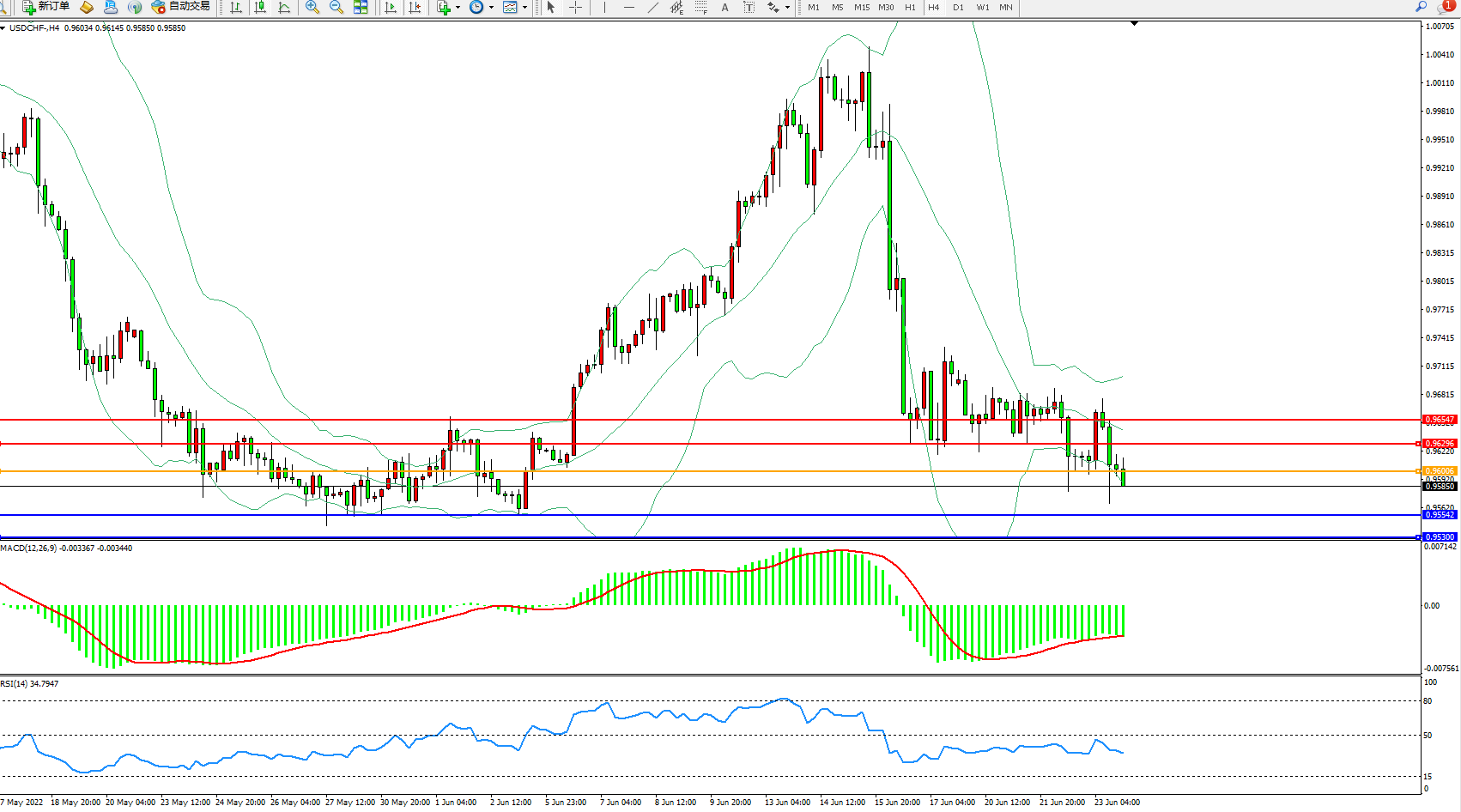 美元瑞郎USDCHF——4小时K线图显示: