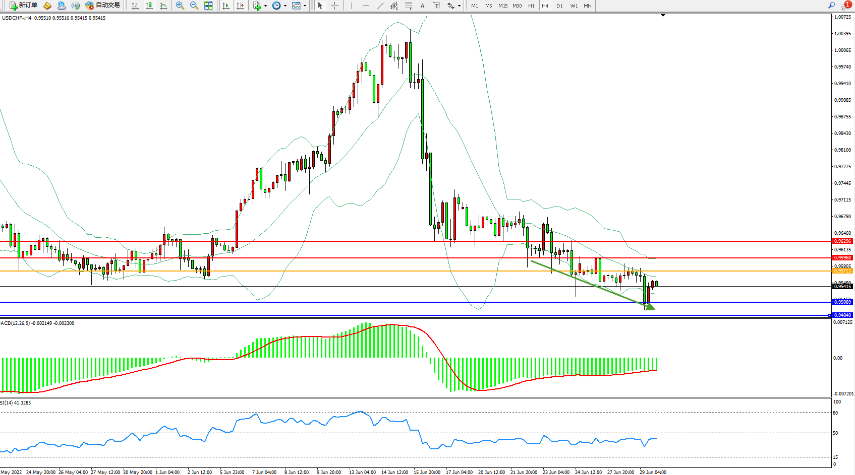 美元瑞郎USDCHF——4小时K线图显示: