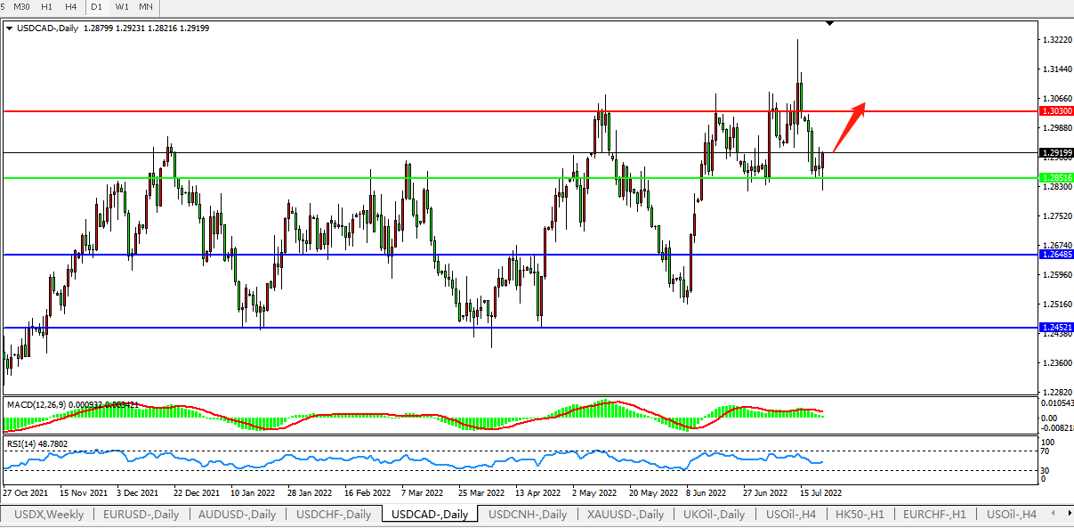 USDCAD:1.2850附近考虑买入