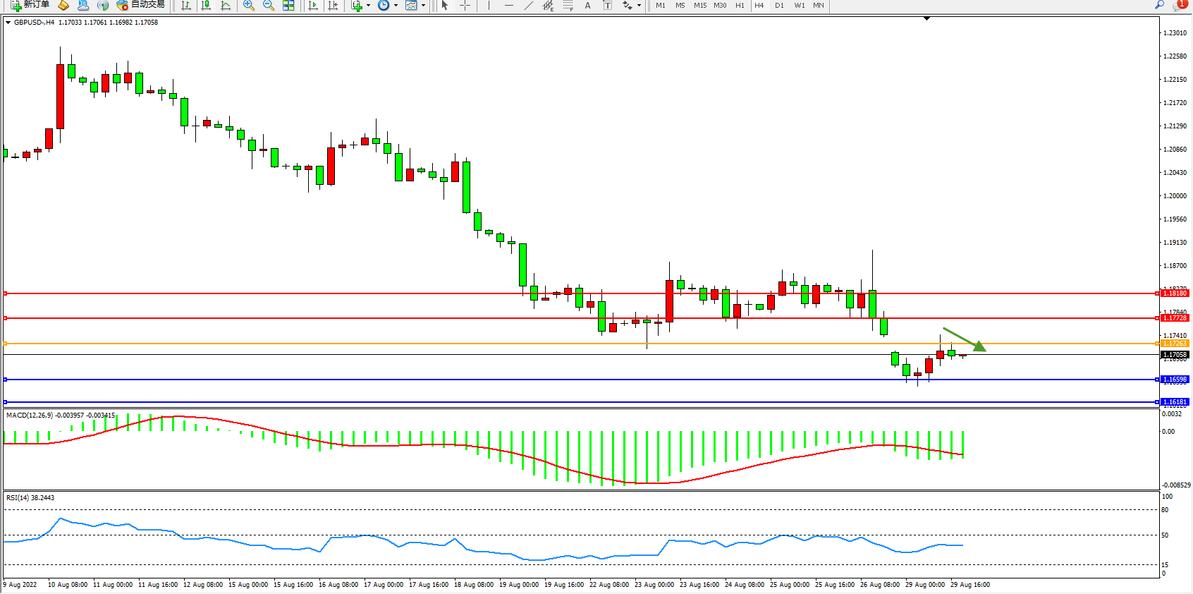 英镑美元GBPUSD ——4小时K线图显示: