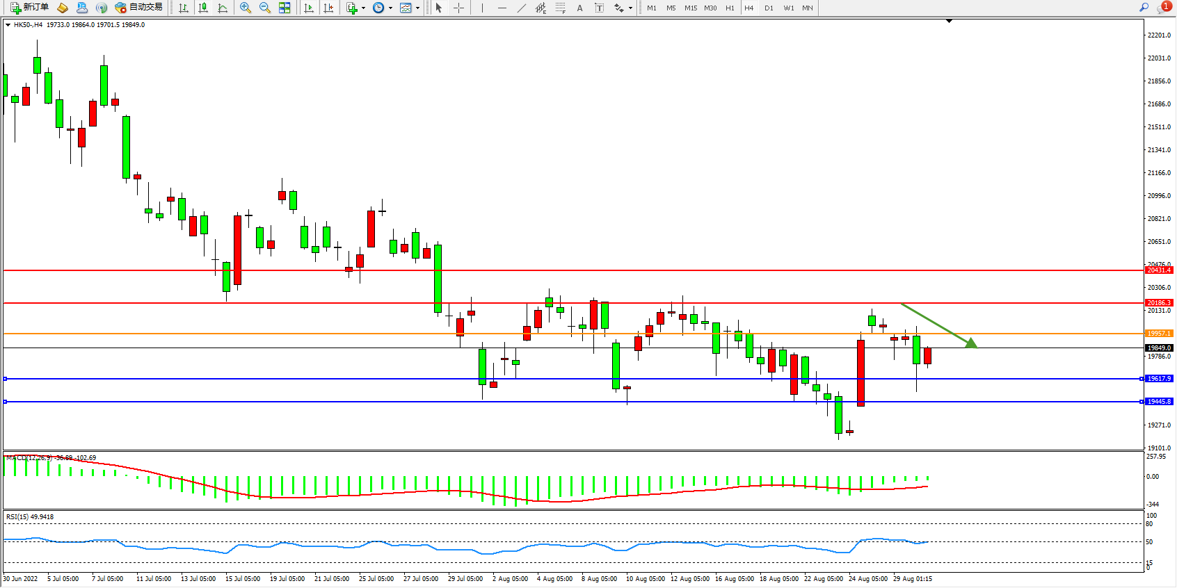 恒指HK50 4小时图