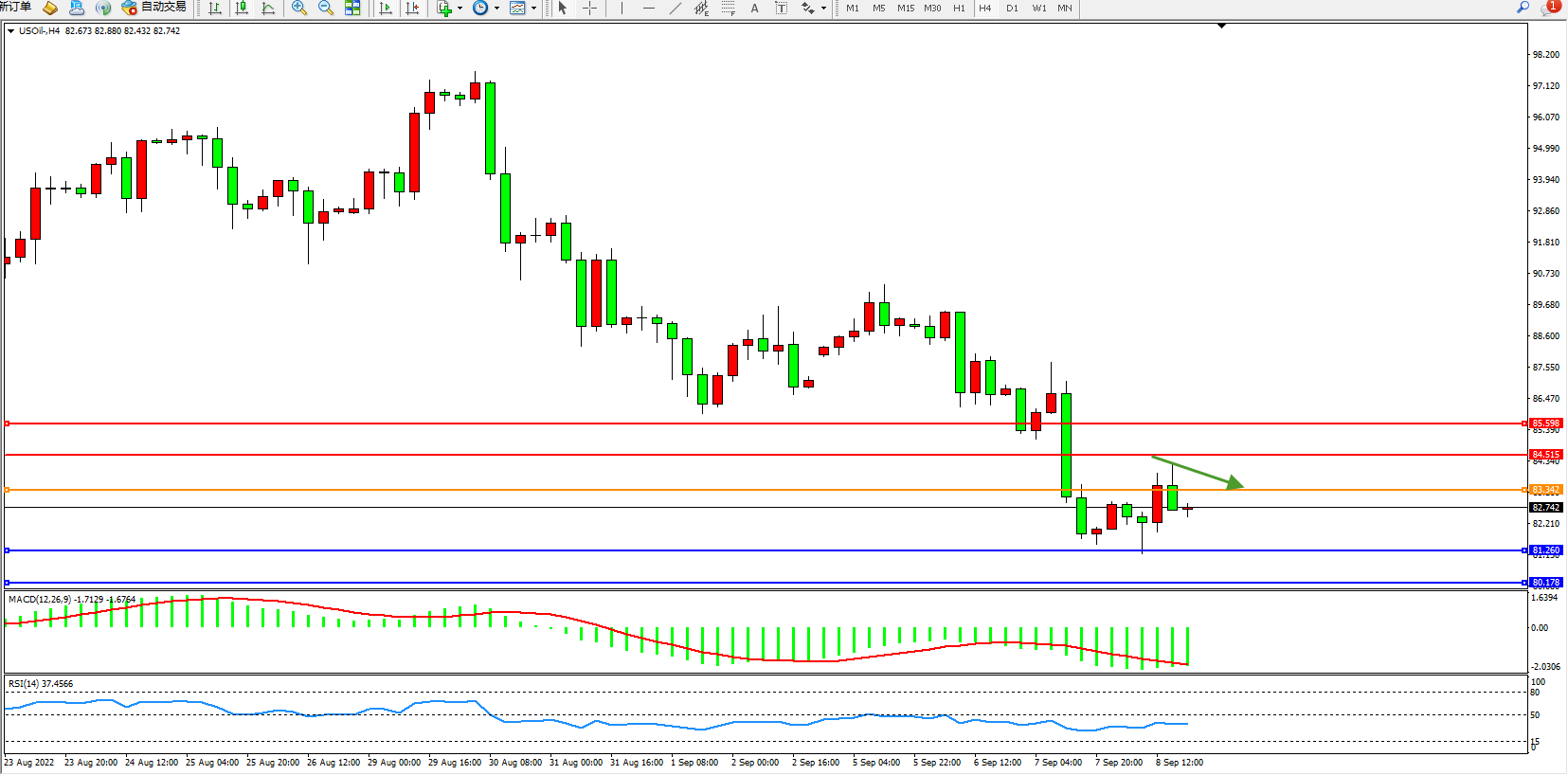 交易策略:83.342下方看跌,目标81.260、80.178