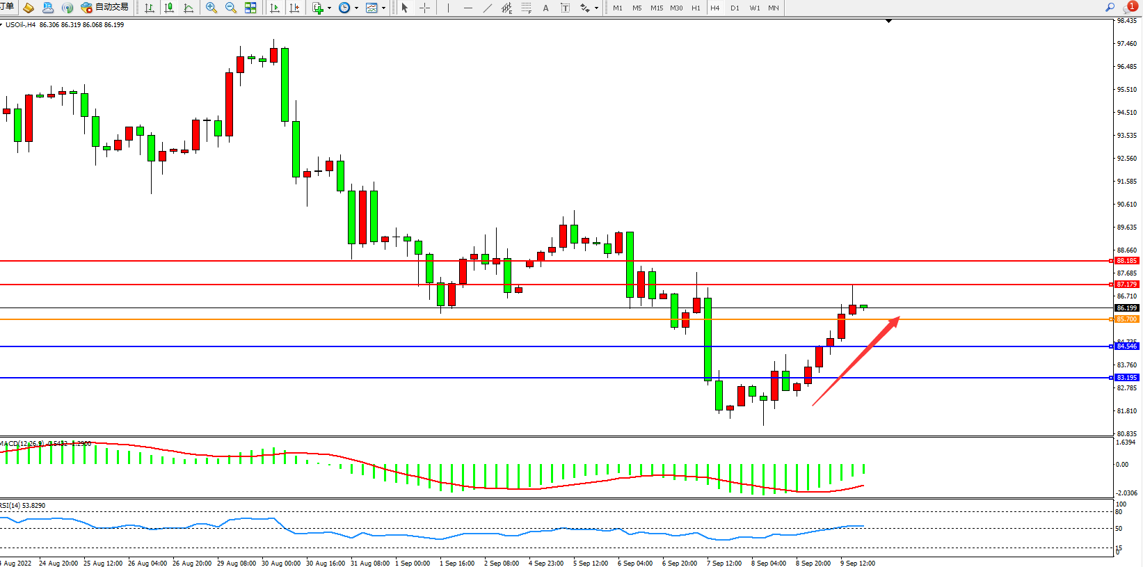原油USOil——4小时K线图显示:
