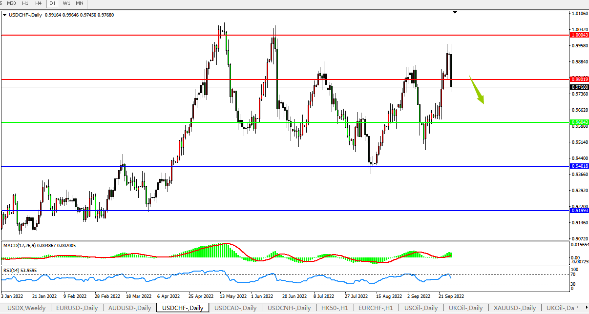 美元兑瑞郎USDCHF 日线图